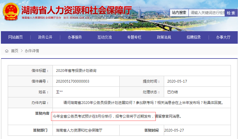 重磅消息:2020年湖南公務(wù)員考試筆試時間預(yù)計8月舉行,招考公告將于近期發(fā)布!速看: