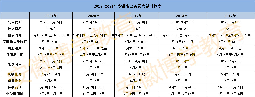 由上表可見,安徽公務(wù)員考試時(shí)間比較穩(wěn)定,預(yù)計(jì)2022年安徽省考2月中下旬左右出公告和報(bào)名,筆試時(shí)間3月中下旬,且近幾年都參加聯(lián)考,所以安徽繼續(xù)參加2022年聯(lián)考的幾率非常大,如果今年繼續(xù)參加。(具體時(shí)間安排以2022年安徽公務(wù)員公告為準(zhǔn))可生可根據(jù)此時(shí)間表做好復(fù)習(xí)規(guī)劃。