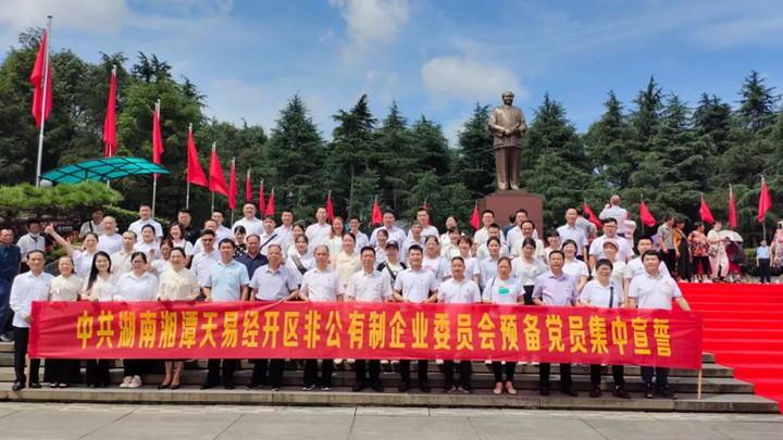 為進(jìn)一步引導(dǎo)全體黨員、干部賡續(xù)革命傳統(tǒng),傳承紅色基因,6月23日,湘潭縣天易經(jīng)開(kāi)區(qū)非公黨委組織示范區(qū)企業(yè)黨支部書(shū)記,帶領(lǐng)示范區(qū)預(yù)備黨員58人前往韶山集中宣誓。實(shí)地參觀毛澤東銅像廣場(chǎng)、毛澤東同志故居、毛澤東同志紀(jì)念館,組織全體黨員到韶山觀看《最憶韶山?jīng)_》紅色演出。湘冶黨支部書(shū)記曾霞,預(yù)備黨員劉美林、張敏、張亮等三名同志全程參加了此次活動(dòng)。
